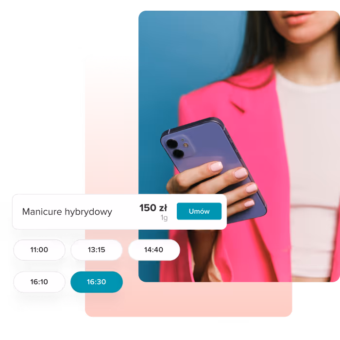 Klienci mogą przeglądać Twoje usługi, sprawdzać dostępność i samodzielnie rezerwować wizyty o każdej porze. Koniec z telefonami i ciągłym uzgadnianiem terminów.